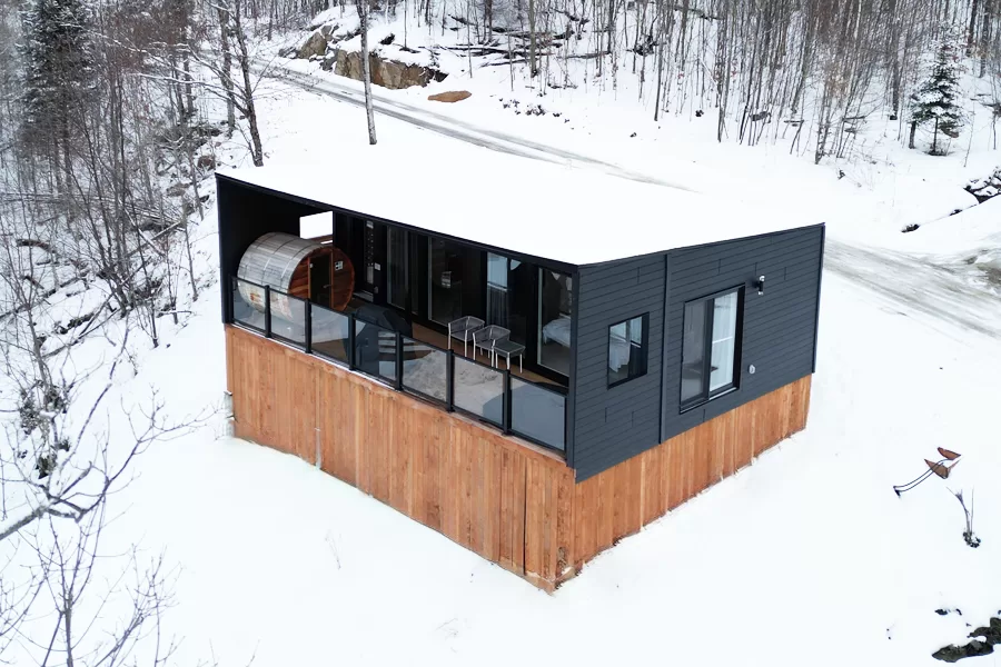 Ushuaia 2 est la location de chalet idéale à Mont Tremblant pour un week-end romantique. Cette location moderne d’une chambre à Bel Air Resort se trouve en pleine nature.