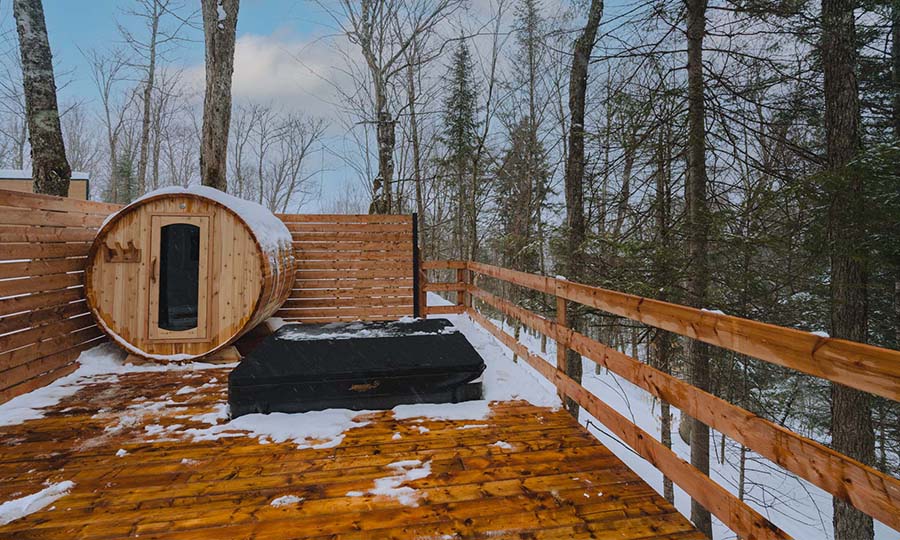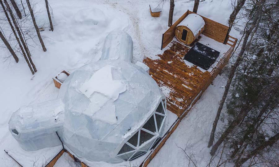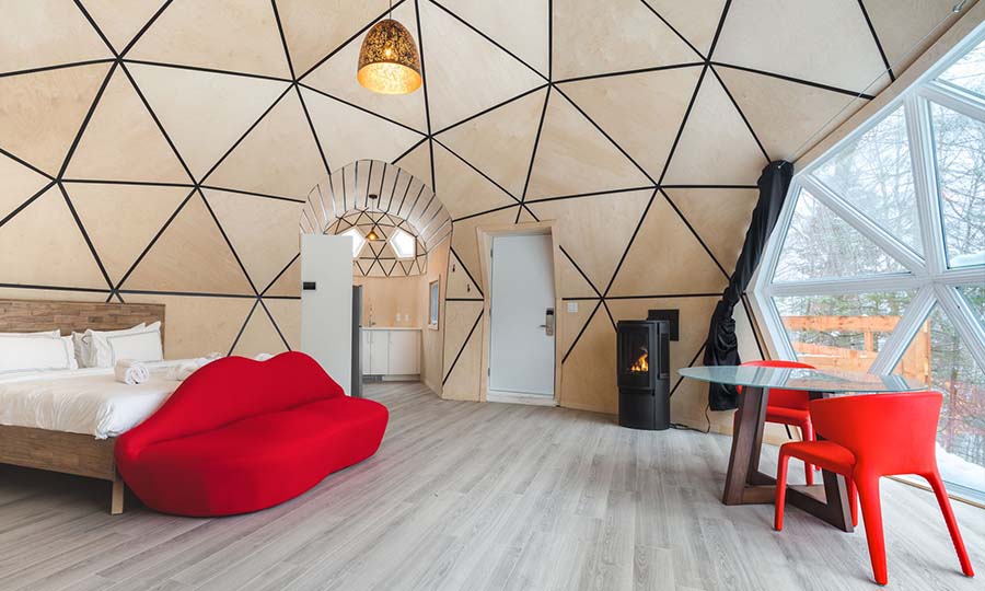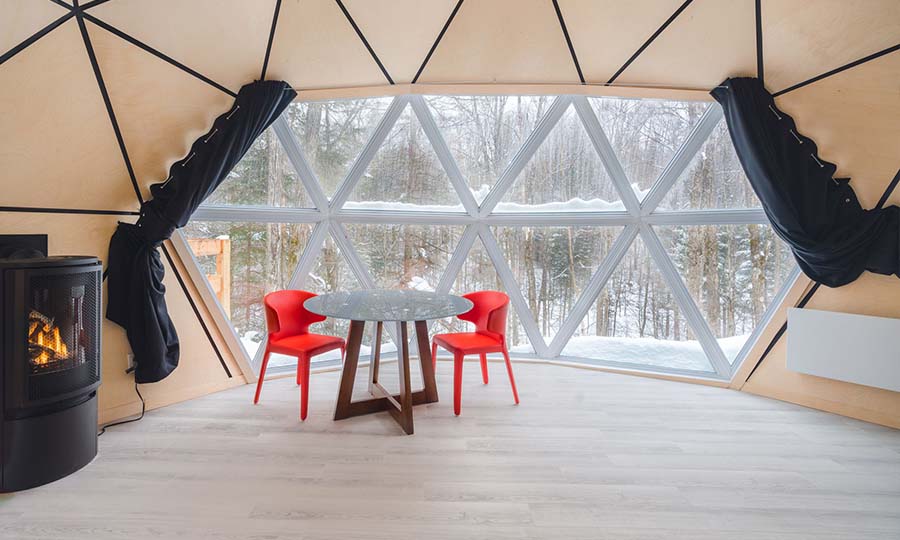 The Mickey dome rental in Mont Tremblant has free WiFi and parking for two cars.