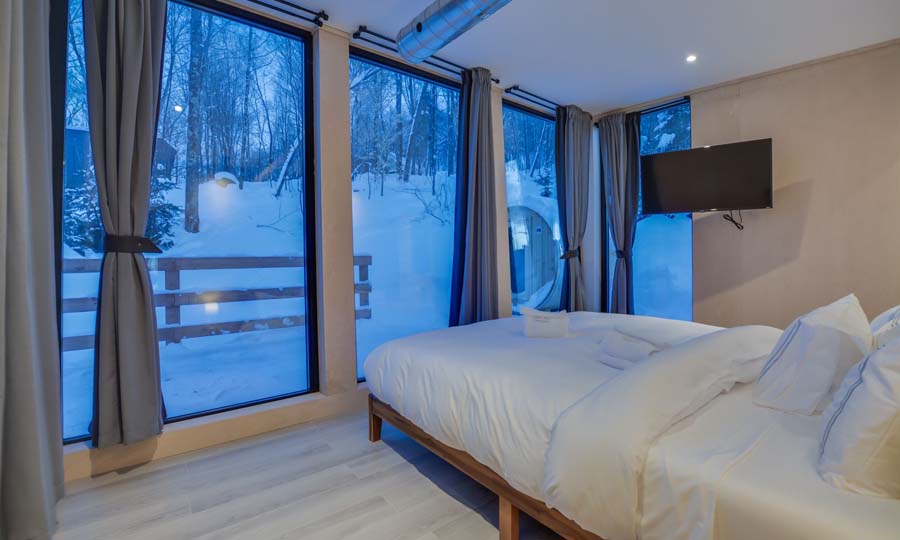 The Double Antarctica has a well-designed floor plan that places each bedroom on opposite sides of the main living area. Both bedrooms have king-size beds and en-suite bathrooms with rainfall showers. These bedrooms have large pane windows that fill the room with light and offers exceptional views of nature.